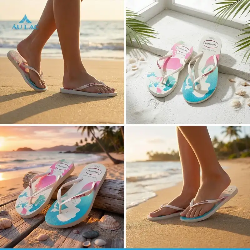 Dép tông nữ LP11 in 3D với tông màu tươi sáng, sản xuất từ hạt EVA tại nhà máy Âu Lạc Bắc Ninh. Dép nhẹ, bền, êm chân, phù hợp đi trong nhà, dạo phố và du lịch.